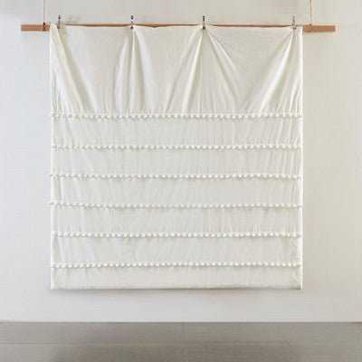 Madison Park Leona 3 Piece Pom Pom Cotton Duvet Cover Set in Ivory, Full / Queen MP12-6214