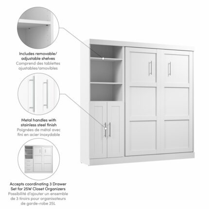 Full Murphy Bed and Closet Organizer with Doors (84W)