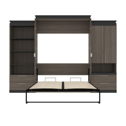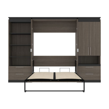 Bestar Orion 118W Full Murphy Bed with Multifunctional Storage (119W) in bark gray & graphite
