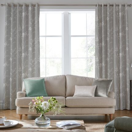 Laura Ashley Pussy Willow Made To Measure Curtains Off White Seaspray