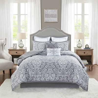 Madison Park Flourish 8 Piece Jacquard Comforter Set in Gray, Queen MP10-7274