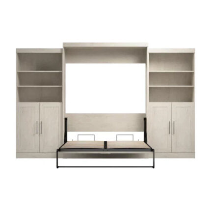 Bestar Pur Queen Murphy Bed with Storage Cabinets (136W) in Linen White Oak