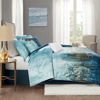 Madison Park Odette 8 Piece Jacquard Comforter Set in Aqua, Queen MP10-8079