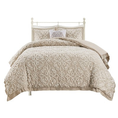 Madison Park Sabrina 4 Piece Tufted Chenille Comforter Set in Taupe, Full / Queen MP10-7120