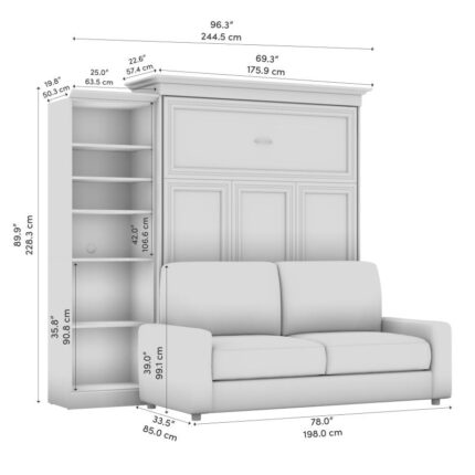Versatile Queen Murphy Bed with Sofa and Shelving Unit 92W in White