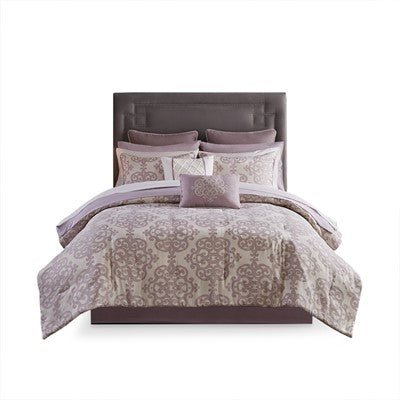 Madison Park Essentials Madeline Jacquard Comforter Set with 2 Bed Sheet Sets in Purple, Cal King MPE10-794