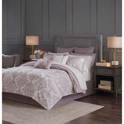 Madison Park Essentials Lafael Comforter Set with Cotton Bed Sheets in Purple, King MPE10-379