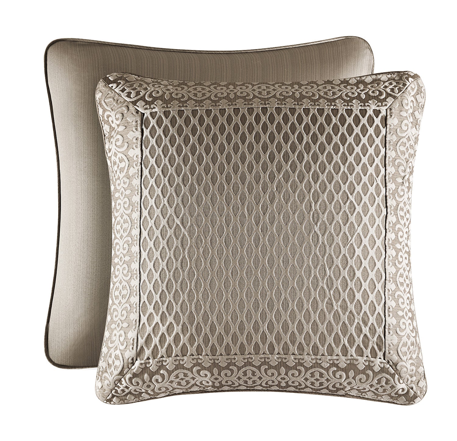 The Beaumont Euro Sham add dimension and drama to your decor. Simple and sophisticated, the over scaled pillow sham uses a classic raised jacquard diamond design bordered on all four sides with a timeless scroll detail. They are tailored with a fine stain cord and reverse to the unique stain stripe coordinate.
