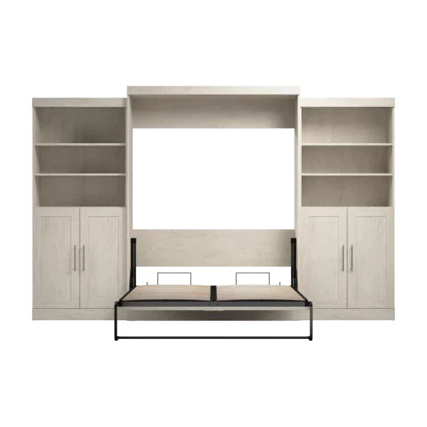 Bestar Pur Queen Murphy Bed with Closet Storage Organizers (136W) in Linen White Oak