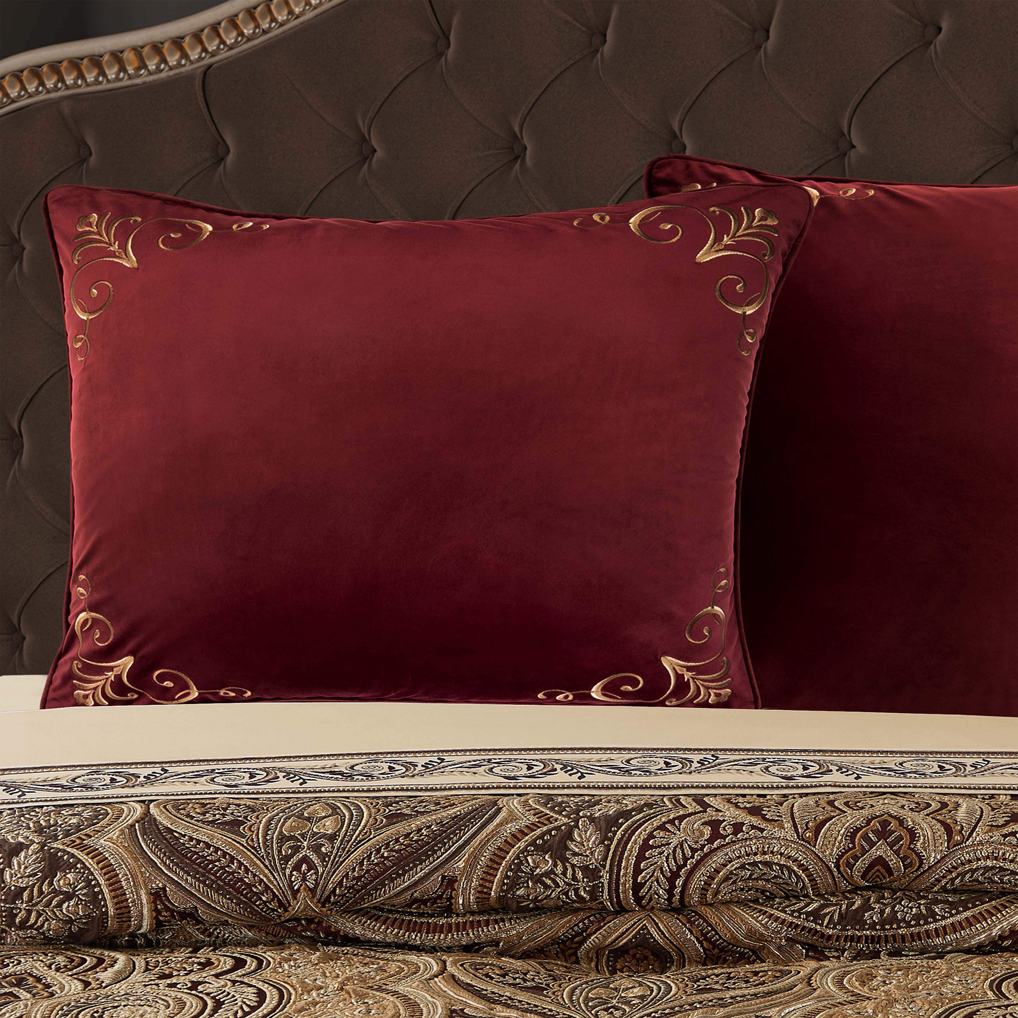 Inspired By Timeless Traditional Elegance, The Bordeaux Euro Sham Is Beautifully Crafted With A Plush Crimson Velvet Fabric And Each Corner Has A Stylized Two-Tone Gold Embroidered Scroll. Featuring A Hidden Zipper Closure And Velvet Crimson On The Reverse, And It Is Finished With Self Fabric Piping. This Luxurious Accent Sham Is Recommended To Add As The Finishing Touch To The Bordeaux Bedding Set.