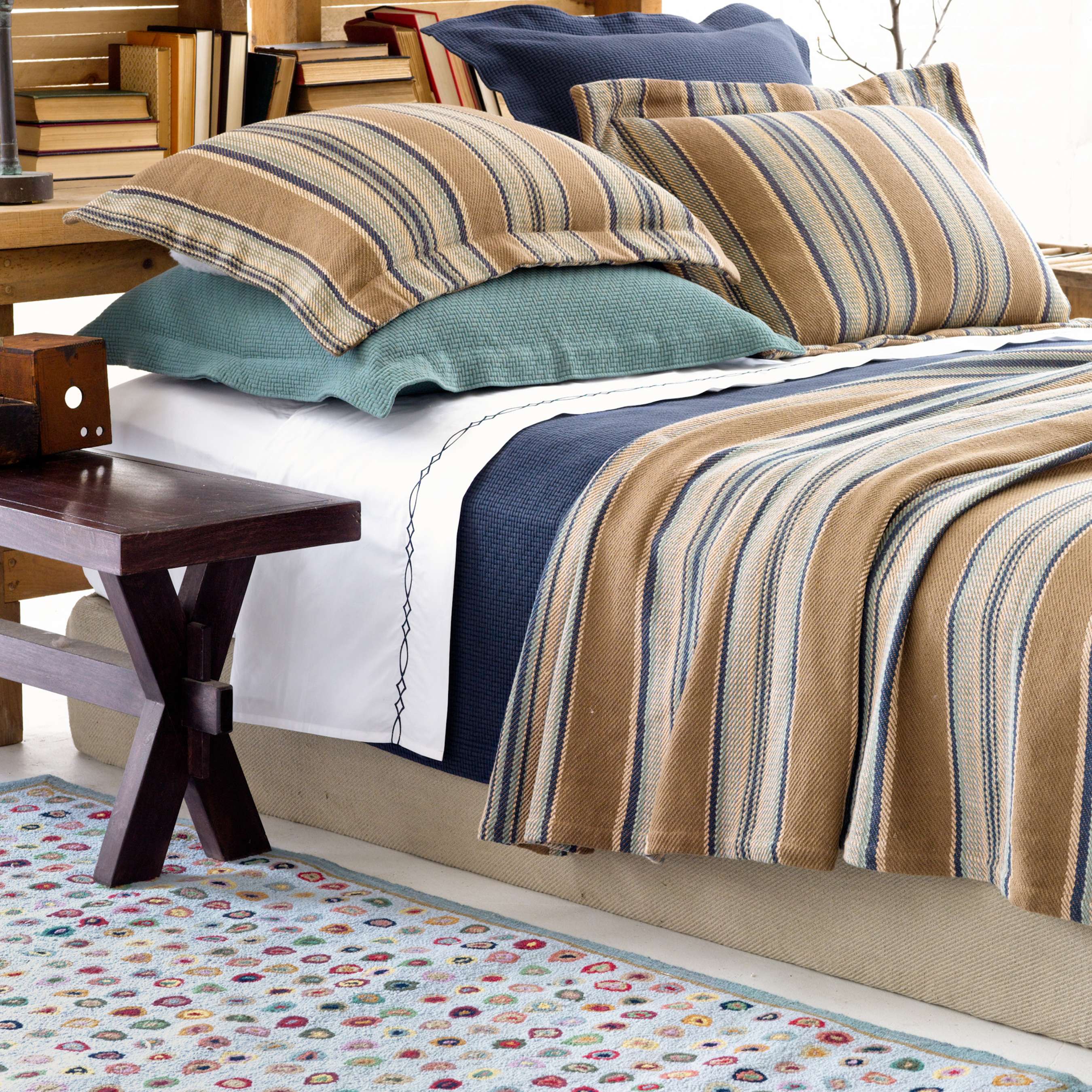 Texture, vivid color, and graphic horizontal stripes all on a durable, yarn-dyed woven cotton blanket.