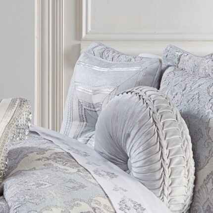 The Iceland Waterfall Valance Is Exquisite With Its Fine Details And Sophisticated Use Of Ice Blue And Silver Tones. This Beautiful Woven Jacquard Damask Valance Is Rich With Its 3-Dimensional Weave And Satin Finish. Embellished With A Sparkling Crystal Tassel Fringe To Add A Gorgeous Elegant Finishing Touch. Add The Iceland Window Panels And Bedding By J. Queen New York To Complete The Look.