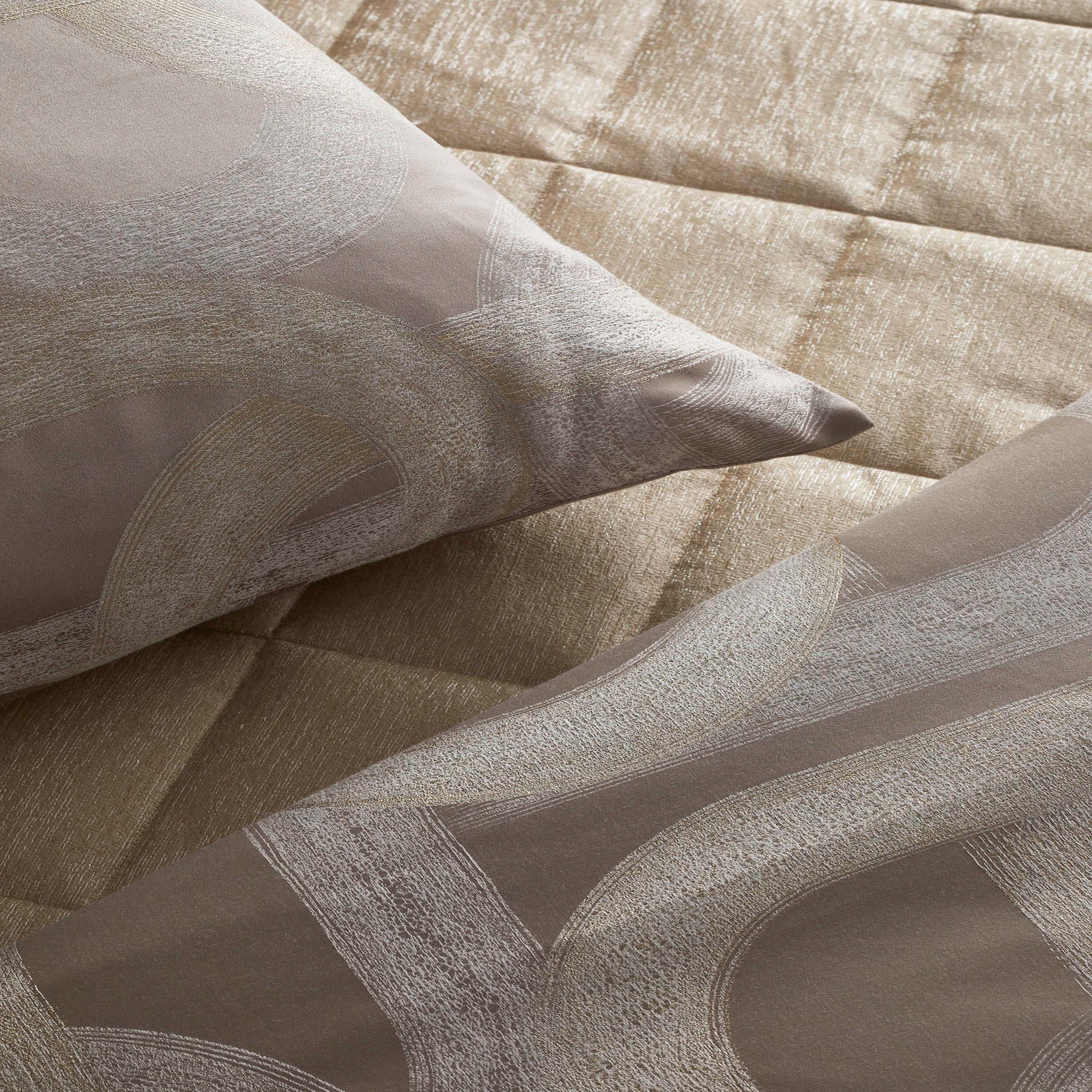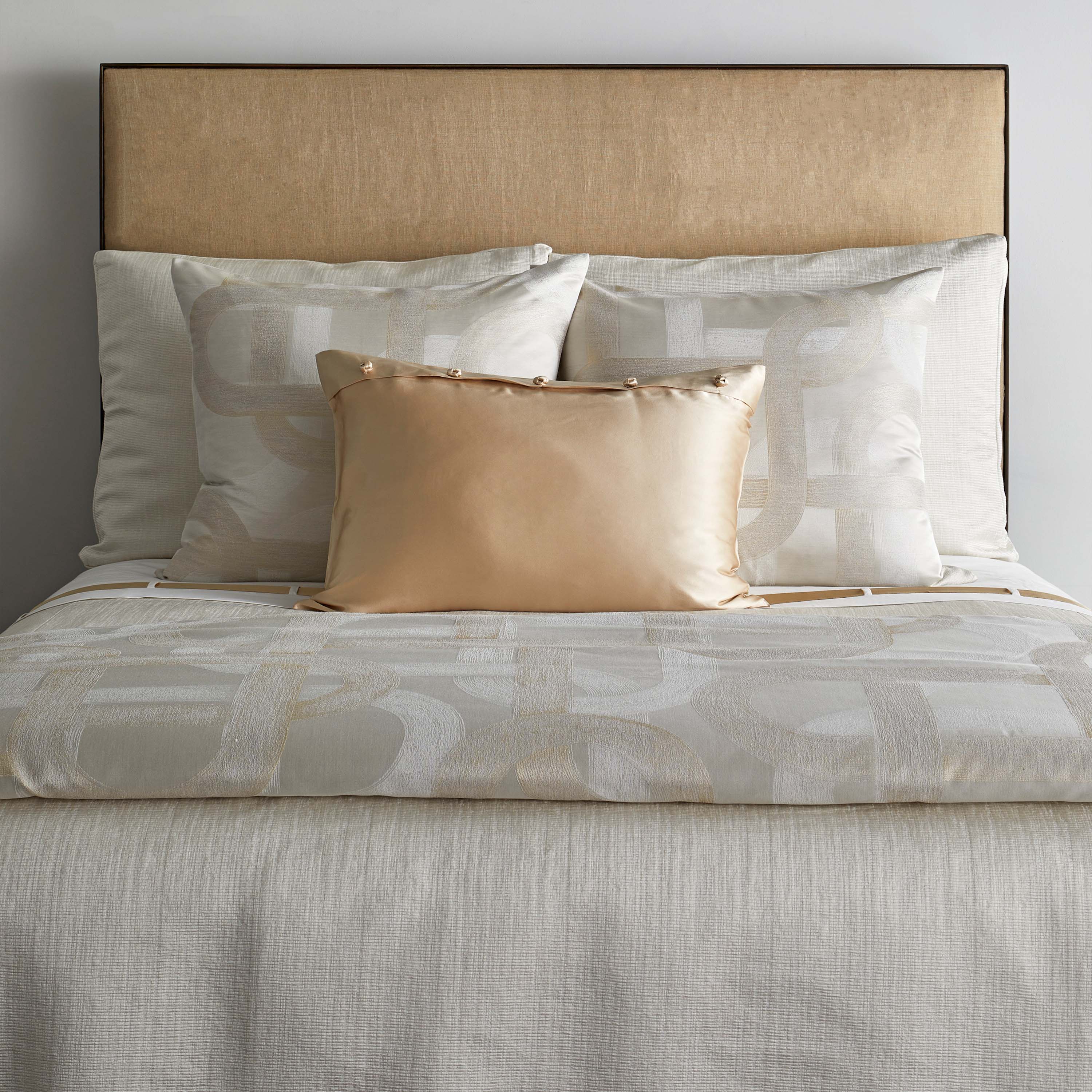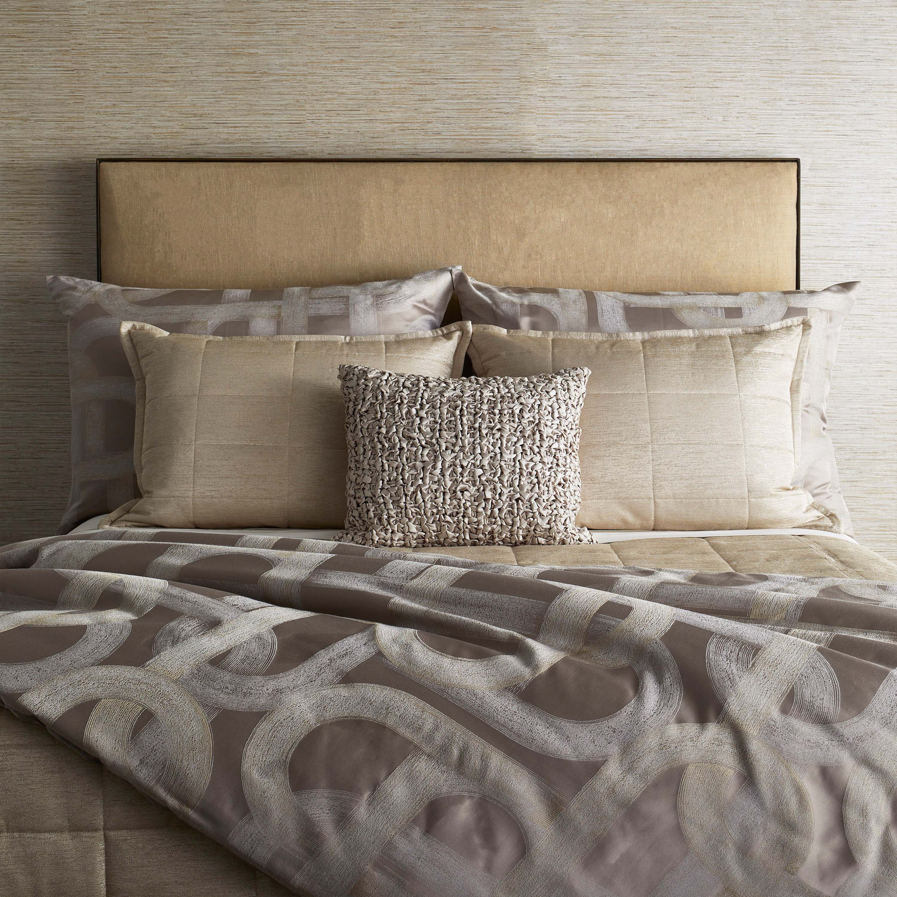 The Art of Home by Ann Gish was created to provide customers with the same quality of goods curated by Ann Gish, at an attainable price point. The products from this collection are sure to elevate any space. Our designs rely on elegance that is easy and pleasurable to live with, achieved through a marriage of form and function. It is luxury created for and enjoyed by the senses. Metal toned strokes bedeck a black, taupe or pearl ground; depicting the curves of the road.