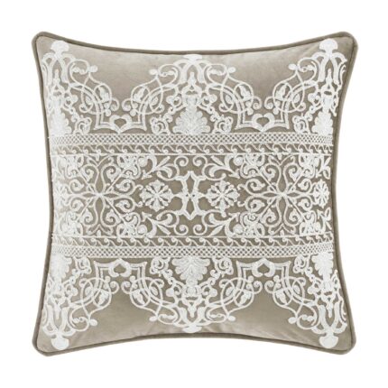 The Opulence Comforter Set Is A Beautifully Embroidered Bedding Ensemble That Adds Understated Sophistication To Your Home Decor. Delicately Detailed With A Cream Embroidery Scroll Pattern That Is Framed With A Fine-Line Lattice Border, Across A Plush Linen Color Velvet Base Fabric. The Oversized Comforter Is Embellished With 1/4″ Piping For Added Detail. The Four Piece Set Includes One Comforter And Two Perfectly Matched Padded Pillow Shams With A Hidden Zipper Closure And A Tailored Bedskirt With Split Corners And A 15″ Drop. Pair This Bedding Collection With The Opulence Throw Pillows, Shams, And Window Treatments For A Complete Look.