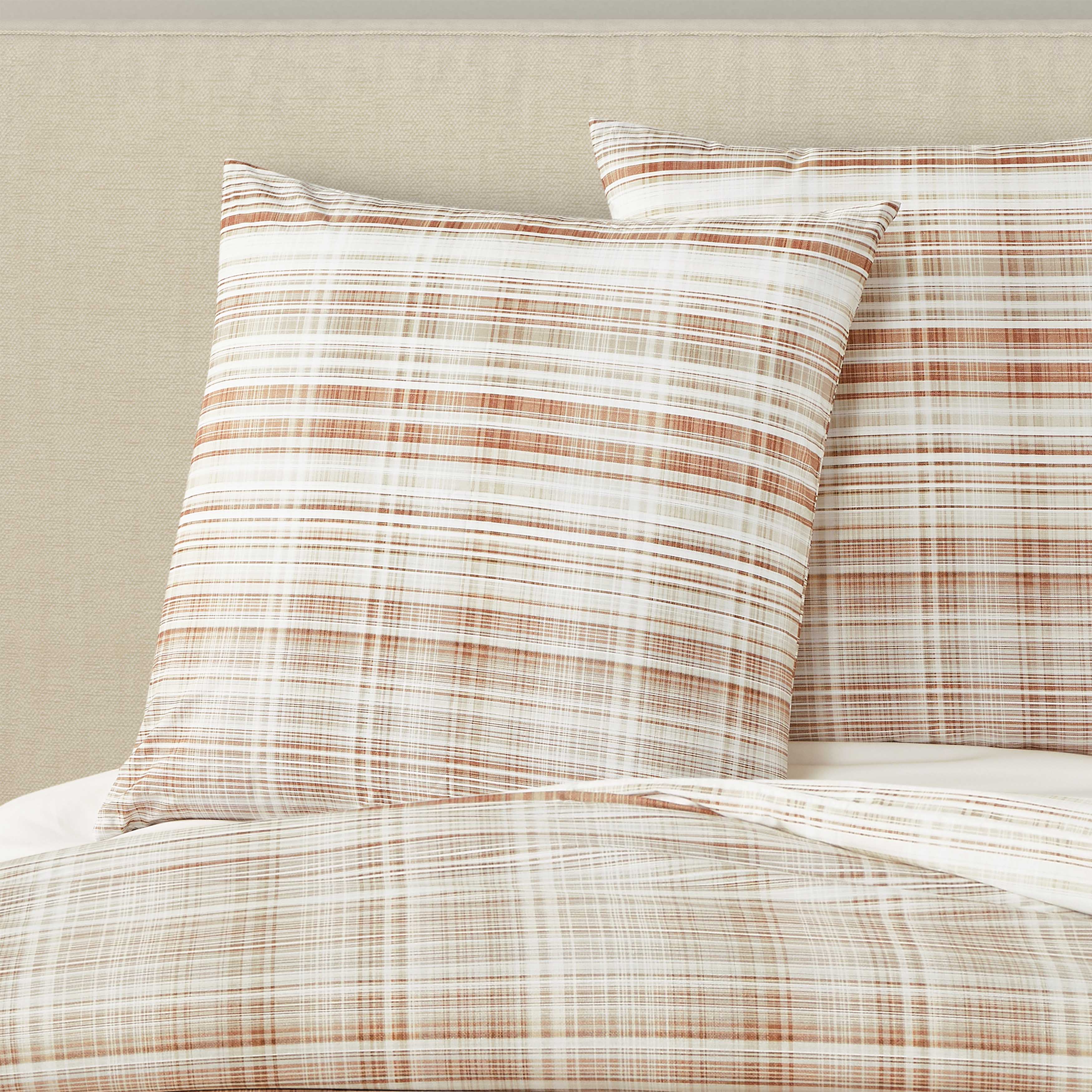 The pascal euro sham features a mini-plaid design on a soft 100% cotton fabric. The euro sham is finished with self-fabric piping and a hidden zipper closure, making it fully reversible and the ideal backdrop to the pascal bedding ensemble. Available in your choice of blue or cinnamon color options.