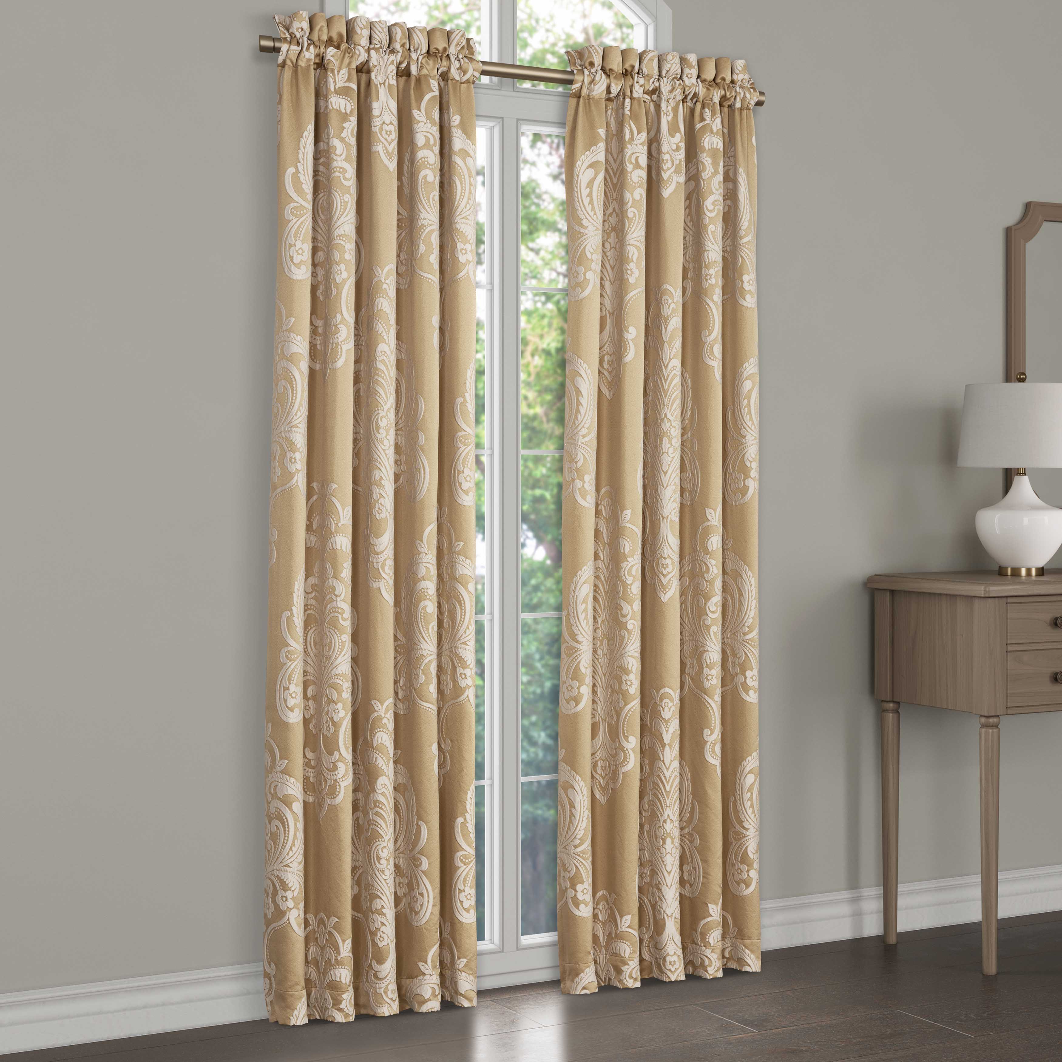 The potenza window panels feature a grand woven damask design in soft ivory and gold hues. Fully lined to keep your room cool and the curtains include coordinate tiebacks. Pair these panels with the potenza bedding set and window valance for a complete timeless traditional look.