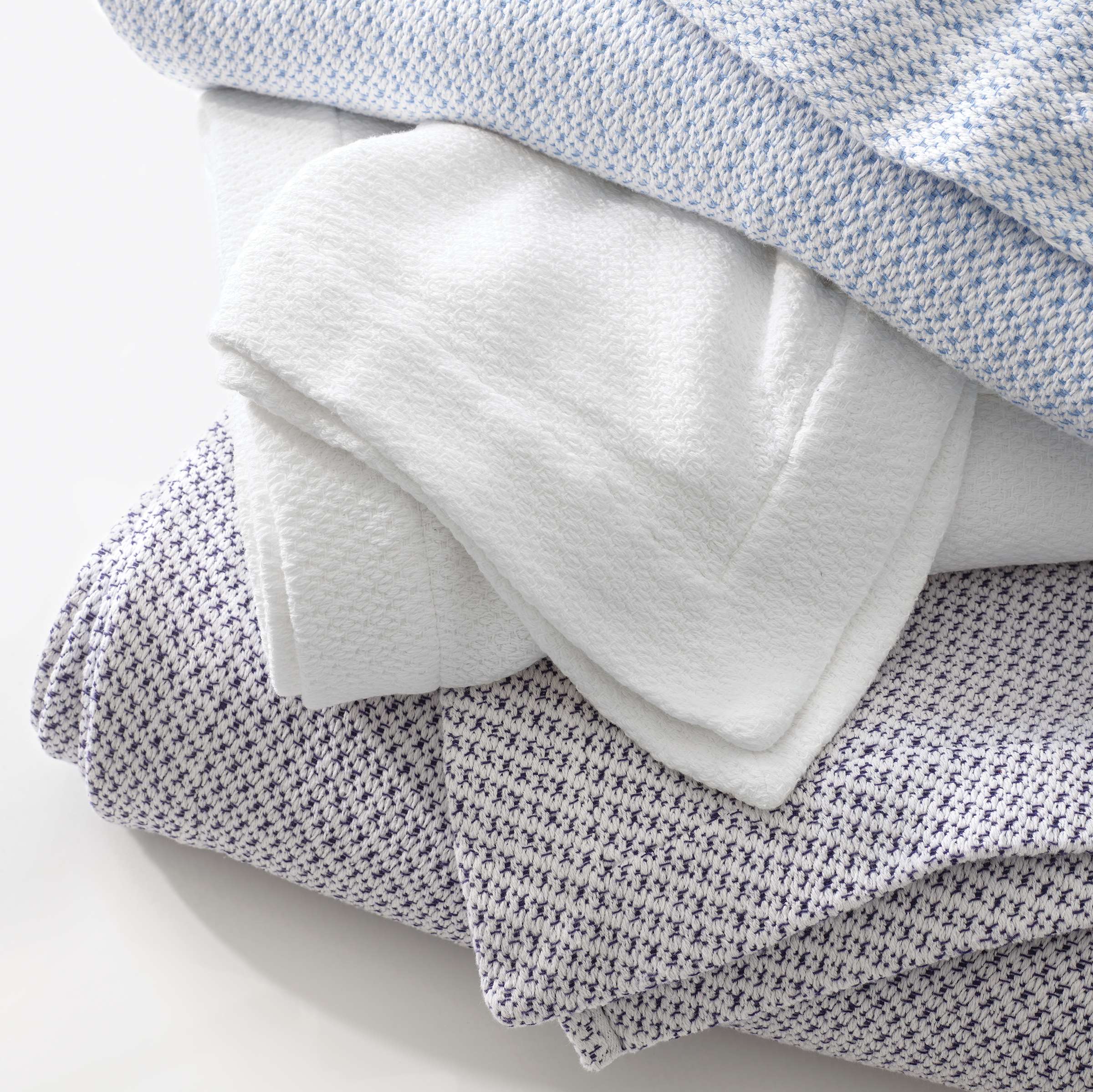 This softly textured cotton knit throw in French blue and white offers the perfect amount of coziness and pattern for any room. Pair it with other pieces from our C3 collection, such as storage bins, bath towels, and decorative pillows.