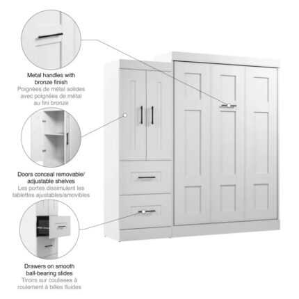 Bestar Edge Full Murphy Bed with Wardrobe (85W) in White