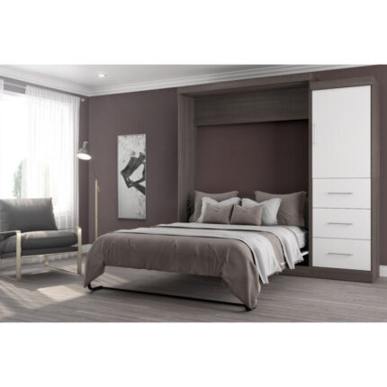 Bestar Nebula Queen Murphy Bed and Storage Unit with Drawers (90W) in bark grey & white