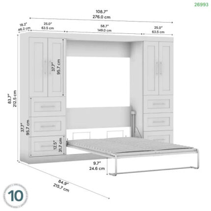 Bestar Pur Full Murphy Bed and Storage Unit with Drawers (84W) in white